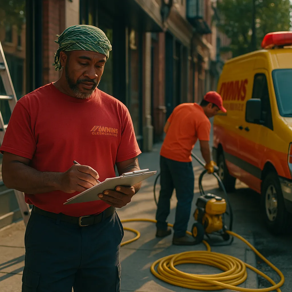 Before we start, our crew inspects your awning, windows, or building exterior to identify surface materials and choose the safest cleaning method.